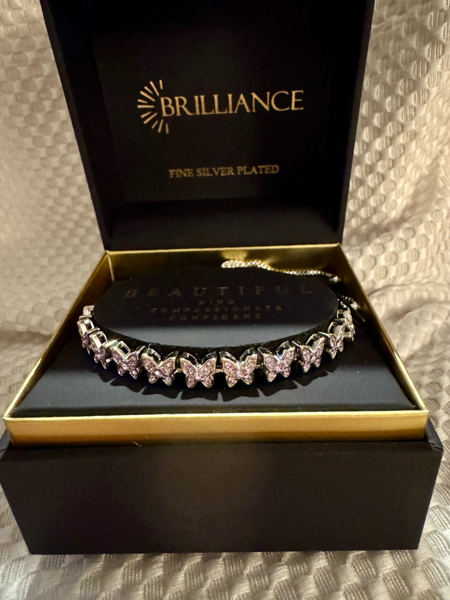 brilliance silver toned with lavender/crystal butterfly bracelet