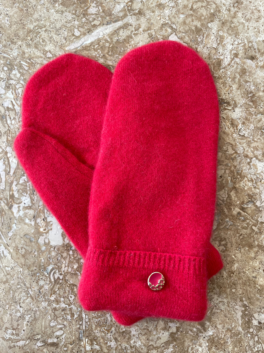 Beautiful red Cashmere sweater mitts made from 100% recycled sweaters. Handcrafted by local artisan Sharon McLaughlin. Ladies.