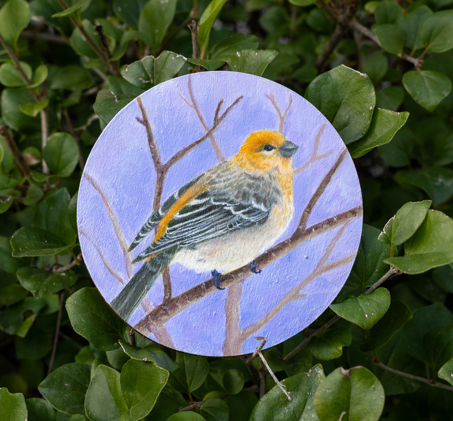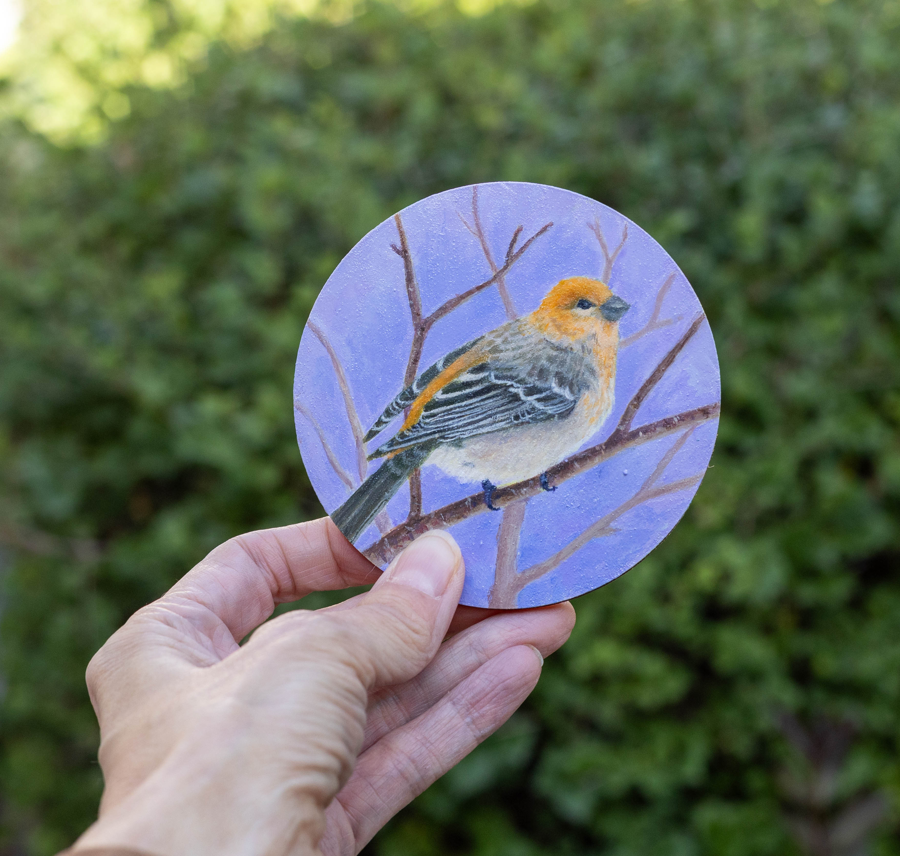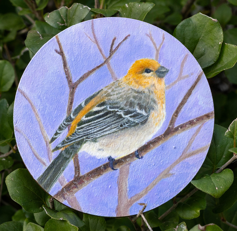 Artist statement: The tiny bird art auction keeps me painting, inspired by the hardy little birds of the Sax-Zim Bog that always capture my heart.