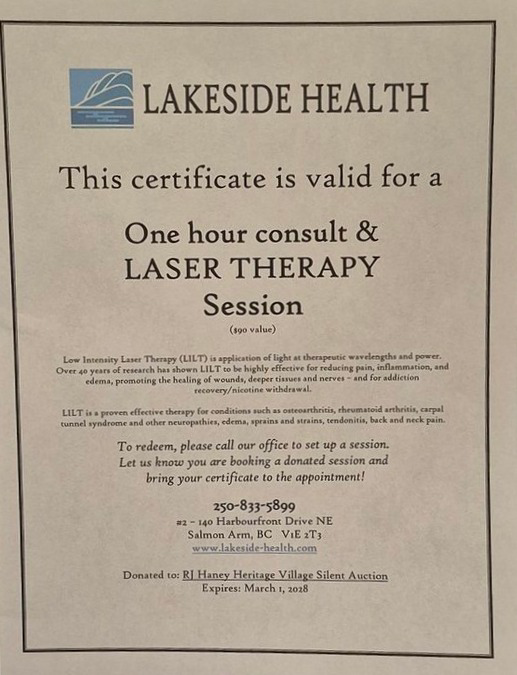 One hour consult & Laser Therapy Session at Lakeside Health. Low intensity Laser Therapy (LILT) is an application of light at the therapeutic wavelengths and power. Over 40 years of research has shown LILT to be highly effective for reducing pain, inflammation, and edema, promoting the healing of wounds, deeper tissues and nerves. It also assists with addiction recovery/nicotine withdrawal. LILT is a proven effective therapy for conditions such as osteoarthritis, rheumatoid arthritis, carpal tunnel syndrome and other neuropathies, edema, sprains and strains, tendonitis, back & neck pain. Lakeside Health, growing health, naturally since 2005. Acupuncture - Traditional Chinese Herbs - Functional Medicine - Registered Massage - Therapeutic Laser - Osteopathy.