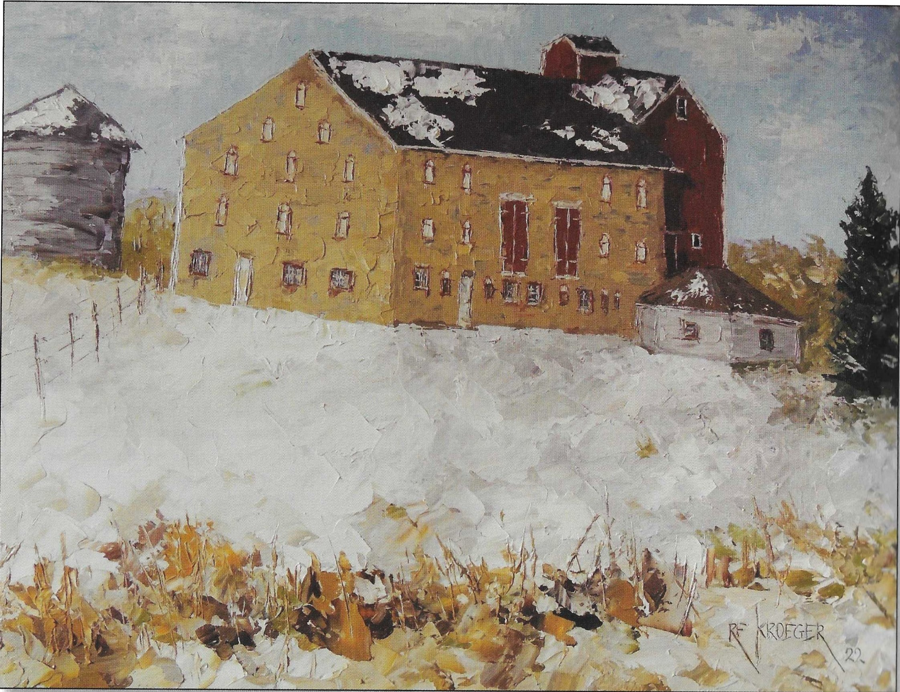 Stephenson County, IL. 11x14". This stone barn displays the legacy of the Lamm family, whose heritage traces back to 1848, when Georg T. and his wife Gertrud Lamm founded this farm. Chances are that they started out with a timber-framed barn, which housed livestock and crops. Fourteen years later they had become prosperous enough to build this stunning stone barn in 1862, one of only a few stone barns still existing in the state. This painting can be seen at the Oregon-Jerusalem Historical Society, located near Toledo, Oh. Call with questions 419 902-5149