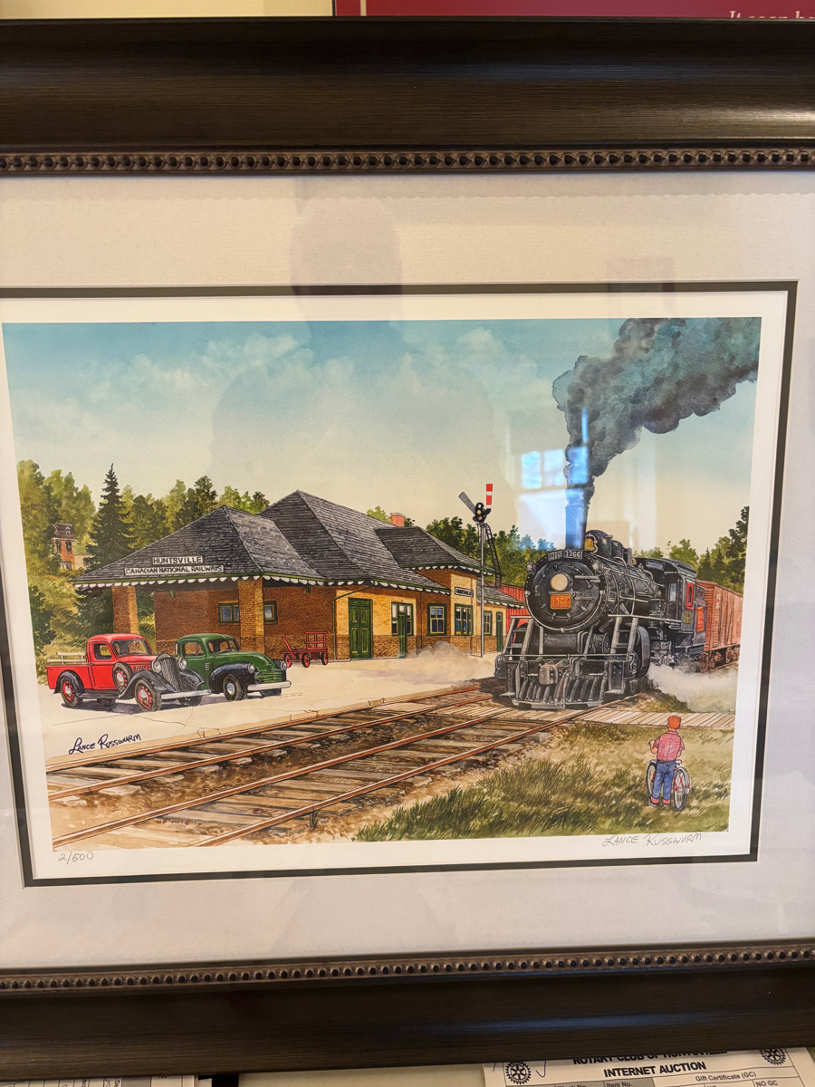 Lance Russwurn Print of Train Station. 24inches by 30 inches. Huntsville and Area Historical Society