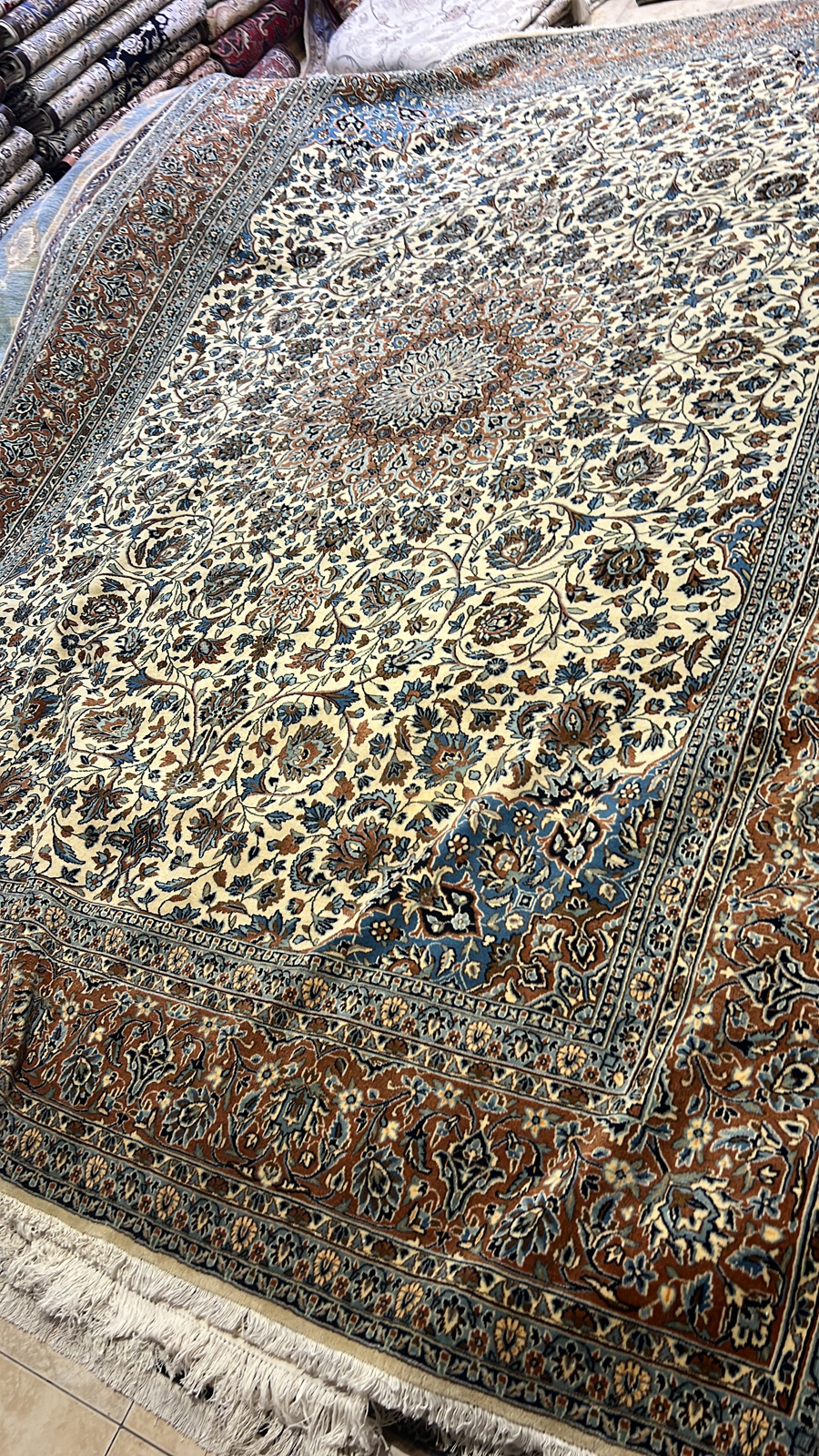 Introducing a stunning large Persian carpet that is sure to enhance the beauty of any space. This beautiful handwoven wool carpet was purchased in Dubai and features intricate designs that showcase the artistry of traditional Persian craftsmanship. Measuring an impressive 427x300 cm, it is large enough to fill a bedroom, making it a perfect centerpiece for your home. This carpet has never been used, ensuring that it is in pristine condition, ready to add elegance and warmth to your living space. Don’t miss out on the opportunity to own this exquisite piece!
