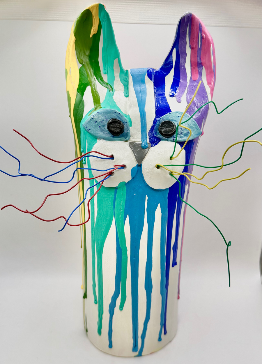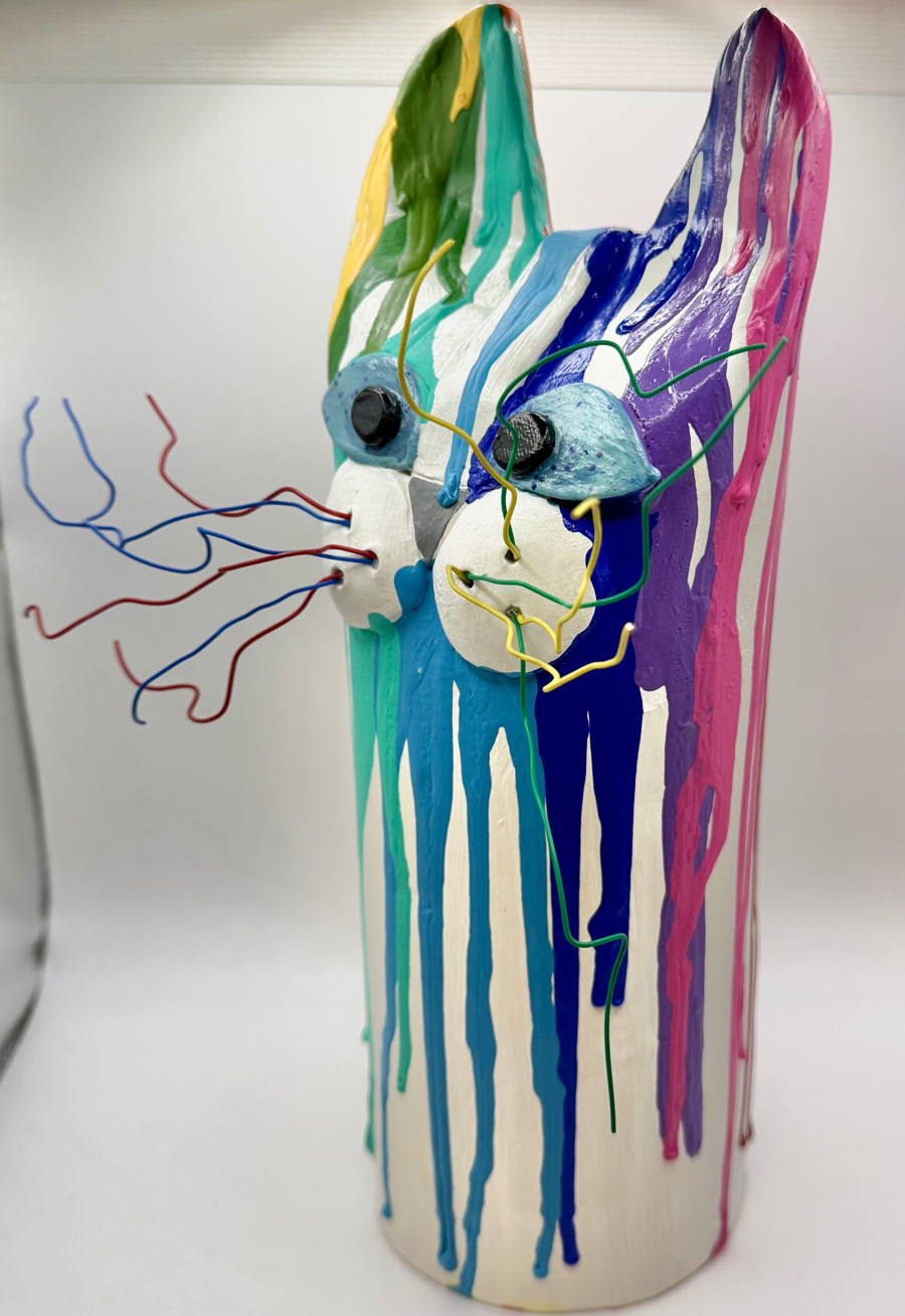 Bold, colourful, and full of personality, this piece features expressive detail and vibrant glaze drips that make it a true statement piece.