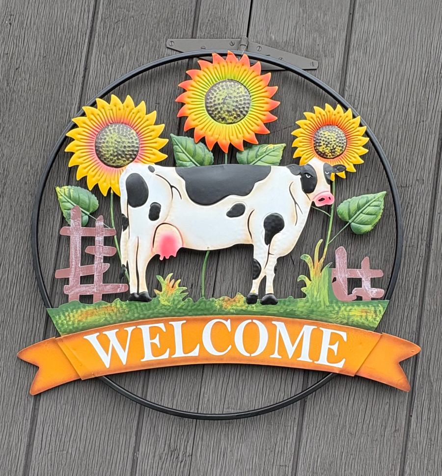 Large Metal Welcome Sign with Cow