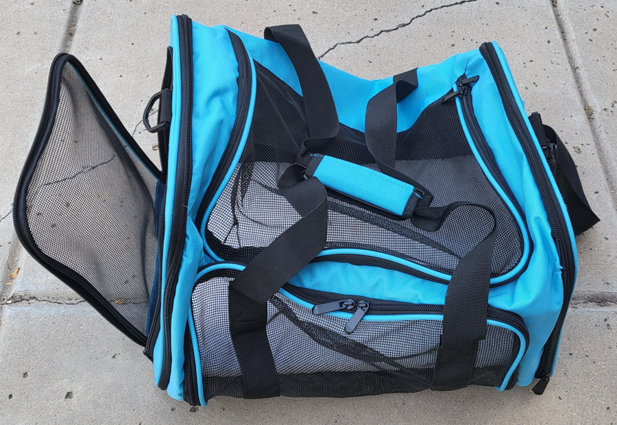 Plenty of mesh venting will keep your pets cool, and the cushiony bottom pad will keep them comfortable as you travel. Outer pockets, shoulder and wrist carry straps. Measures about 19" x 13" x 13"