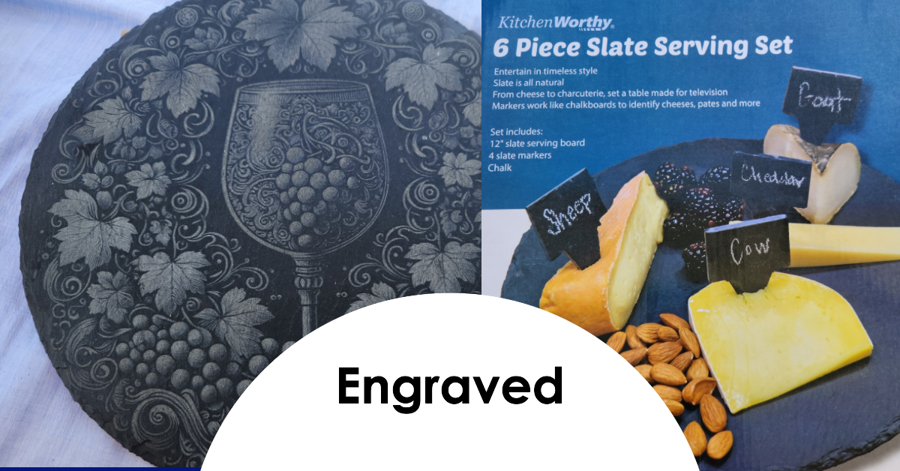 12" Round Slate Board + Chalk & Markers Serve up sophistication with this beautifully laser-engraved slate charcuterie board—perfect for labeling cheeses, meats, fruits, or whatever delights your guests. At 12" in diameter, it’s the ideal size for intimate gatherings or solo snack artistry. The included chalk and markers let you personalize each spread with flair. Whether you're curating a cozy fall spread or crafting a holiday appetizer lineup, this board brings both beauty and function to the table. Crafted with care by the husband of a devoted OWL volunteer.
