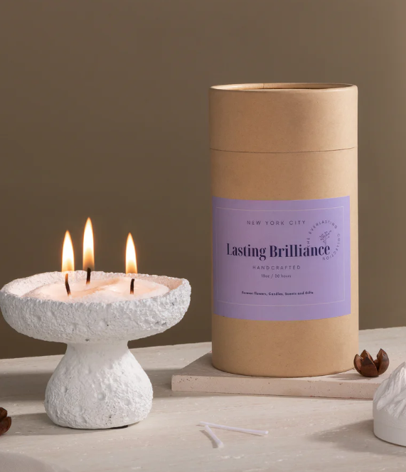 Lasting Brilliance Sand Candle, includes 50 Wicks in Sandalwood with White Sand.