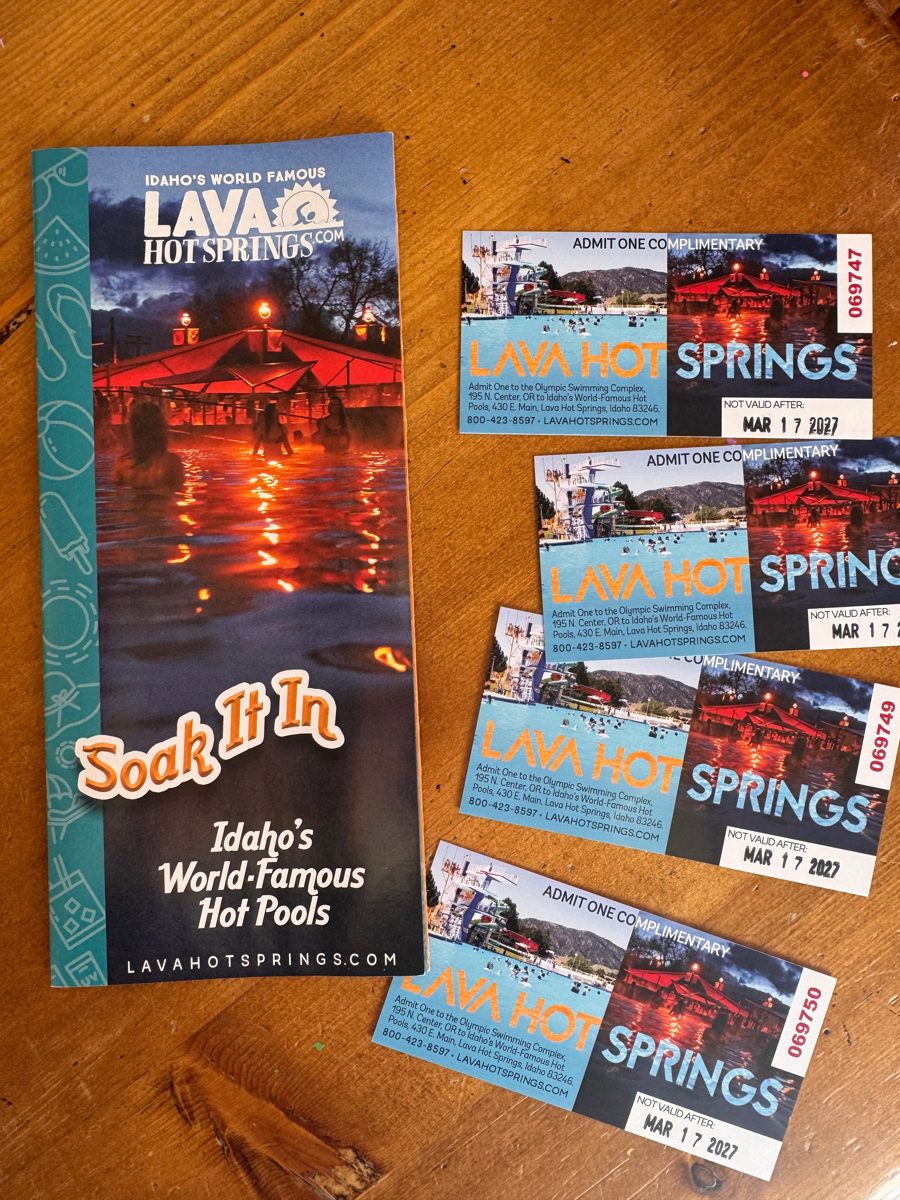 Thank you Lava Hot Springs- 4 passes to the Olympic Swimming Complex, 195 N. Center OR to Idaho's World- Famous Hot Pools!