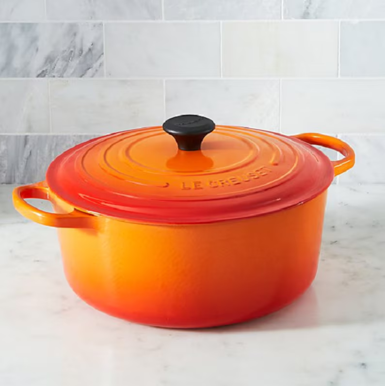Introducing the stunning LE CREUSET CAST IRON DUTCH OVEN in a vibrant Flame Orange color!