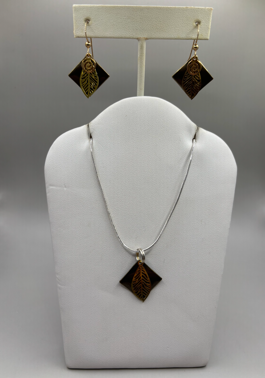 Leaf Design Necklace and Earring Set