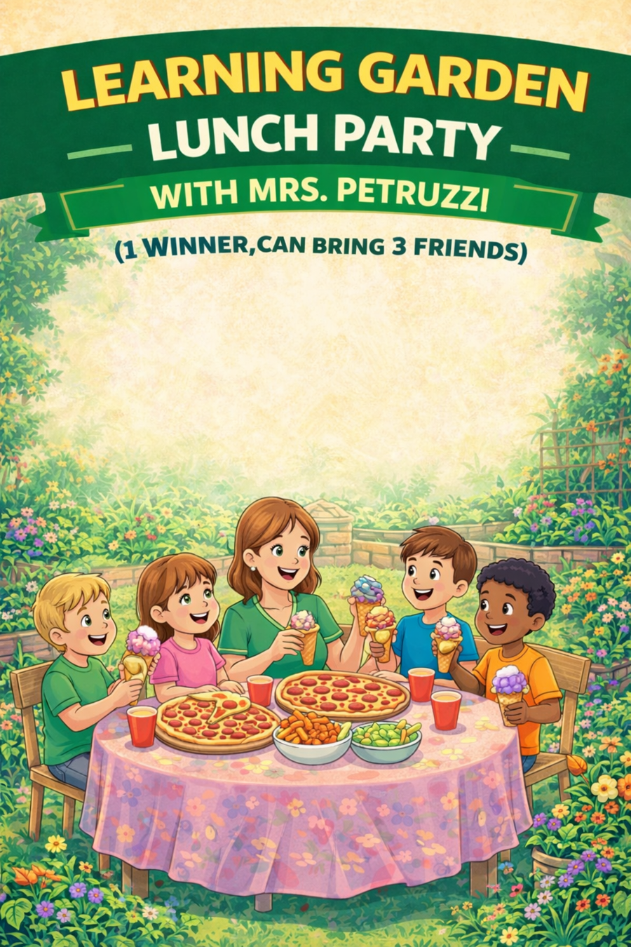 LEARNING GARDEN LUNCH PARTY WITH MRS. PETRUZZI (1 WINNER, CAN BRING 3 FRIENDS)