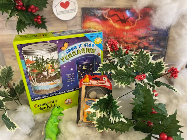 here is an opportunity to grow more wrinkles in your brain with these fun items, Grow and Glo Terrarium kit, Stranger Things puzzle, Crystal Grow kit and everyone's favorite a dinosaur.