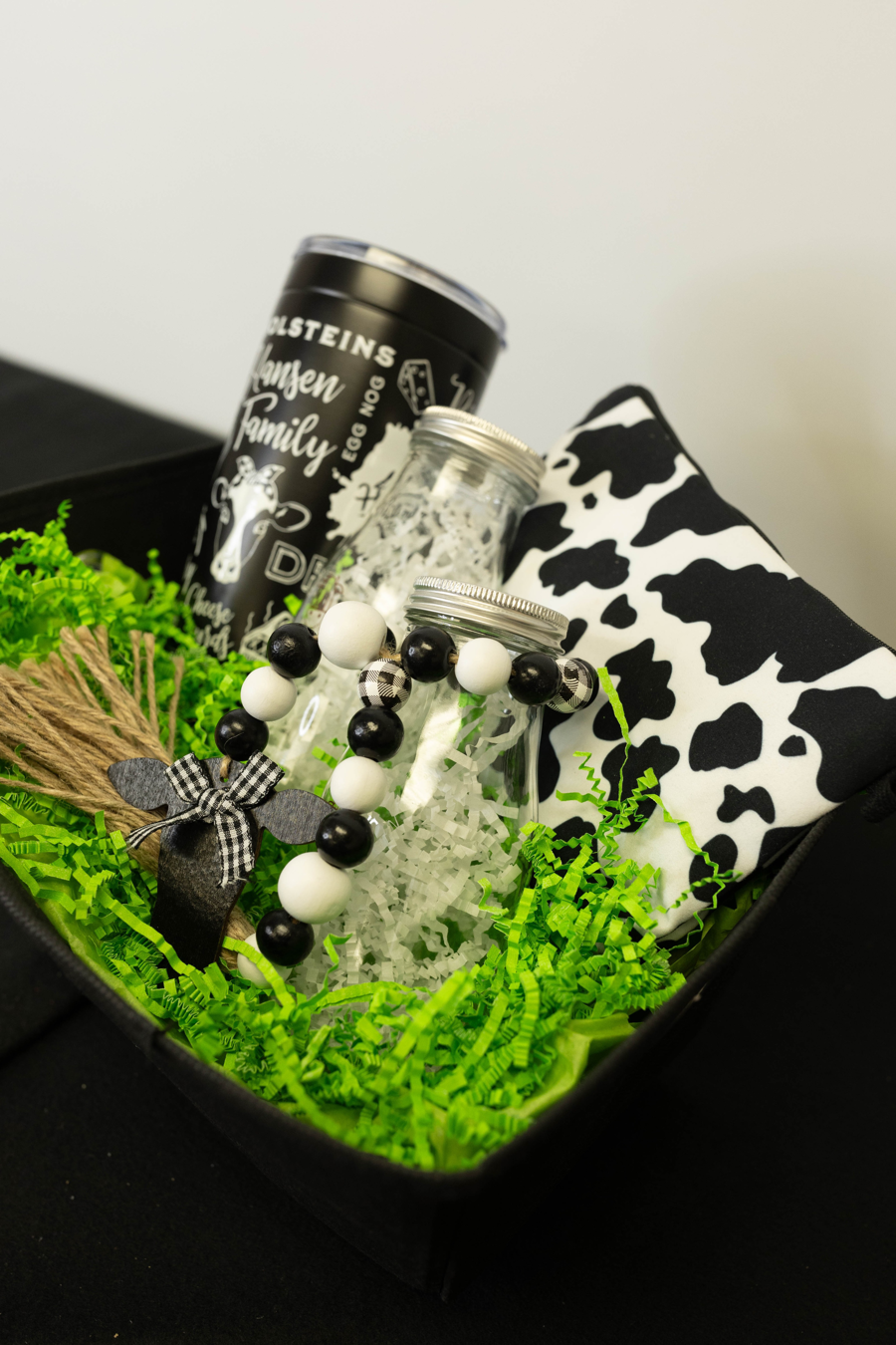 Enjoy a taste of farm life with this fun and educational package, perfect for families or anyone curious about dairy farming. Includes: • Experience: 2 tickets for a Hansen Dairy Farm Tour • Keepsakes & Accessories: Hansen Dairy tumbler, zipper pouch, bead string, 2 milk jars • Basket Included – Great for gifting or display A charming bundle that brings the flavors and fun of the farm right to your home!