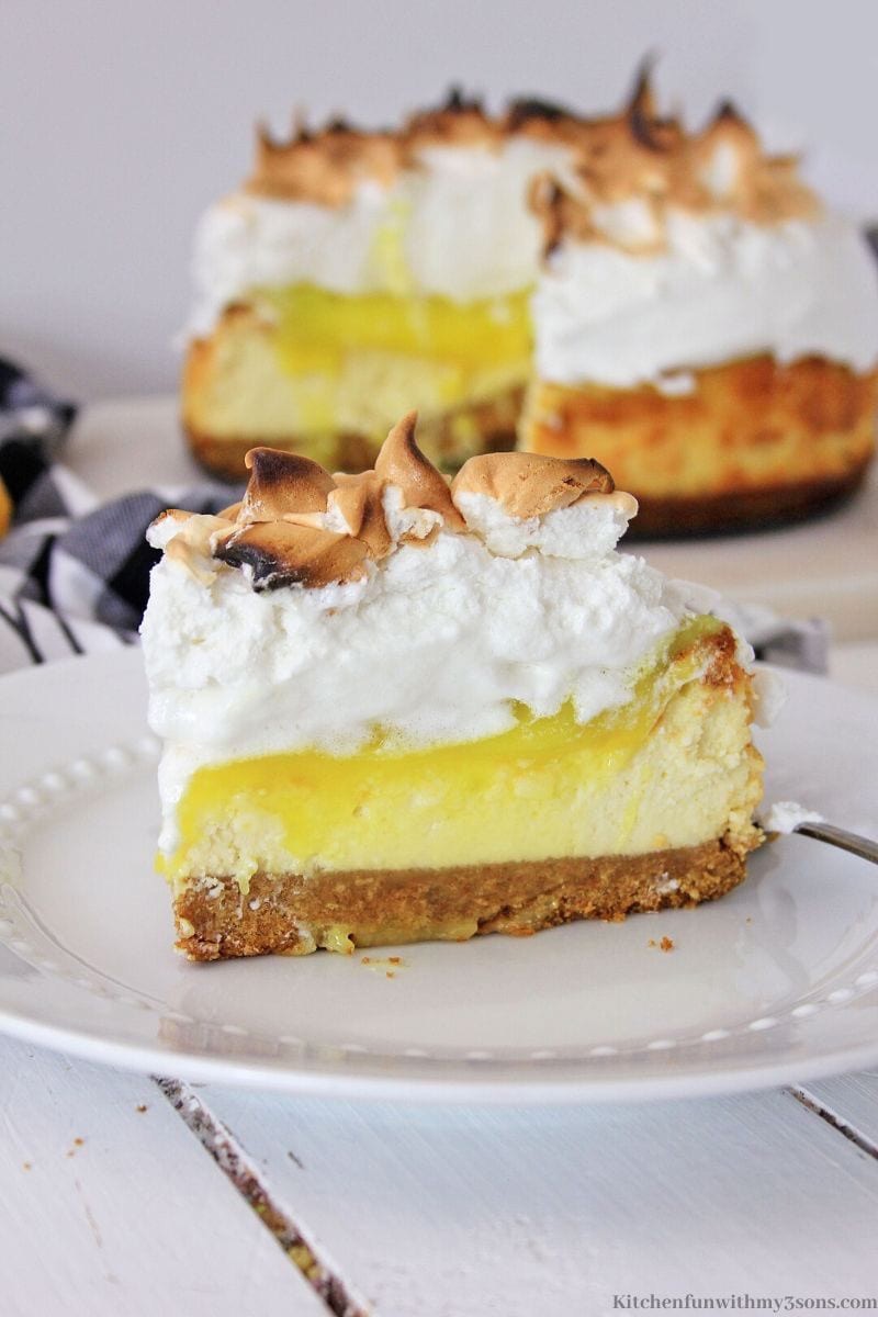 9’ dessert.A perfect mix of Lemon Meringue Pie and a Cheesecake. A graham crust mixed with pecans topped by a creamy cheesecake followed by a fresh lemon topping and completed with lightly toasted soft meringue. Perfect ending to any meal.