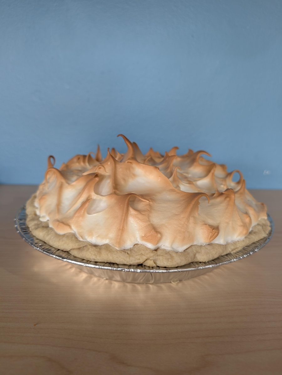 A delicious Lemon Meringue Pie. Sweet lemon filling topped with fluffy, lightly crisped meringue baked by Melissa Mulligan.