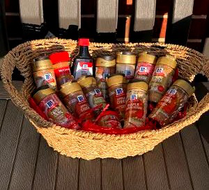 🍰🎄 Let’s Bake! 🧁✨ Whip up something sweet with this delicious baking basket filled with festive McCormick spices and flavored sugars! From Candy Cane Sugar and Apple Cider to English Toffee, Cinnamon Vanilla, Chocolate Hazelnut, Maple Brown Sugar, Pumpkin Pie, and White Frosting – every flavor is a sprinkle of joy waiting to happen. 🎂💫 Perfect for cookies, cakes, or cozy holiday treats — this basket is your invitation to mix, bake, and make life a little sweeter! 🍪❤️ This auction item includes: - 2 Candy Cane sugar - 3 Apple Cider - 2 English Toffee - Cinnamon - Vanilla - Chocolate Hazelnut - Maple Brown Sugar - Pumpkin Pie - White Frosting