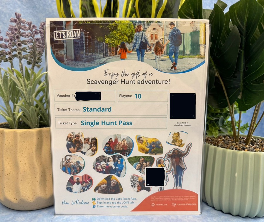 Voucher good for one Scavenger Hunt, up to (10) participants per voucher.