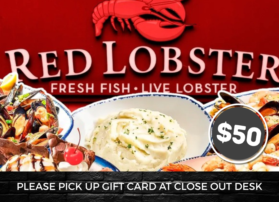 Shell-ebrate YOU! With a Red Lobster gift card, valued at $50! PICK UP GIFT CARD AS CLOSE OUT DESK