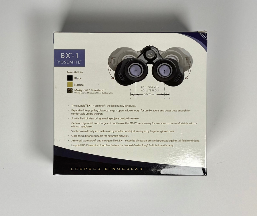 This BX-1 Yosemite Binocular is a compact optic featuring a fully multicoated optical path, and its Porro prism configuration displays more depth of field than roof prism designs. The adjustable eyepiece makes them usable by adults and children, and they are Nitrogen-filled to be fog and waterproof. New