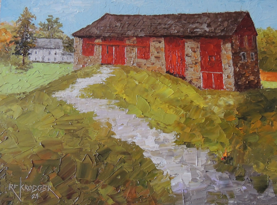 Lehigh County, PA. 9x12". This is another barn, owned by Reverend Blumer, the savior of the Liberty Bell. He rescued the Liberty Bell and hid it in the bottom of his church, preventing the British from melting it to make cannons. A nicely preserved 19th-century barn with a compelling story about the owners. This painting can be seen at the Morgan County Historical Society, located in McConnelsville, Oh. Call with questions 740 962-4785