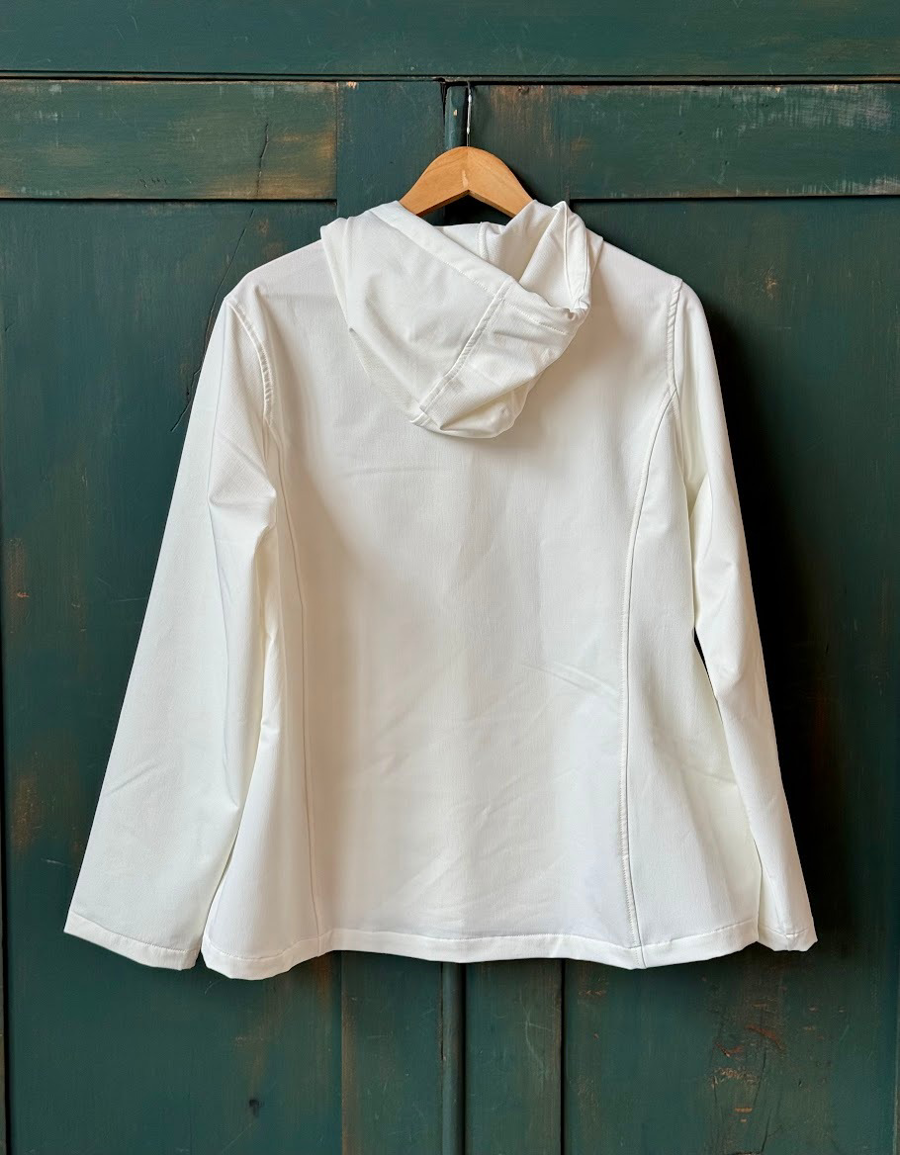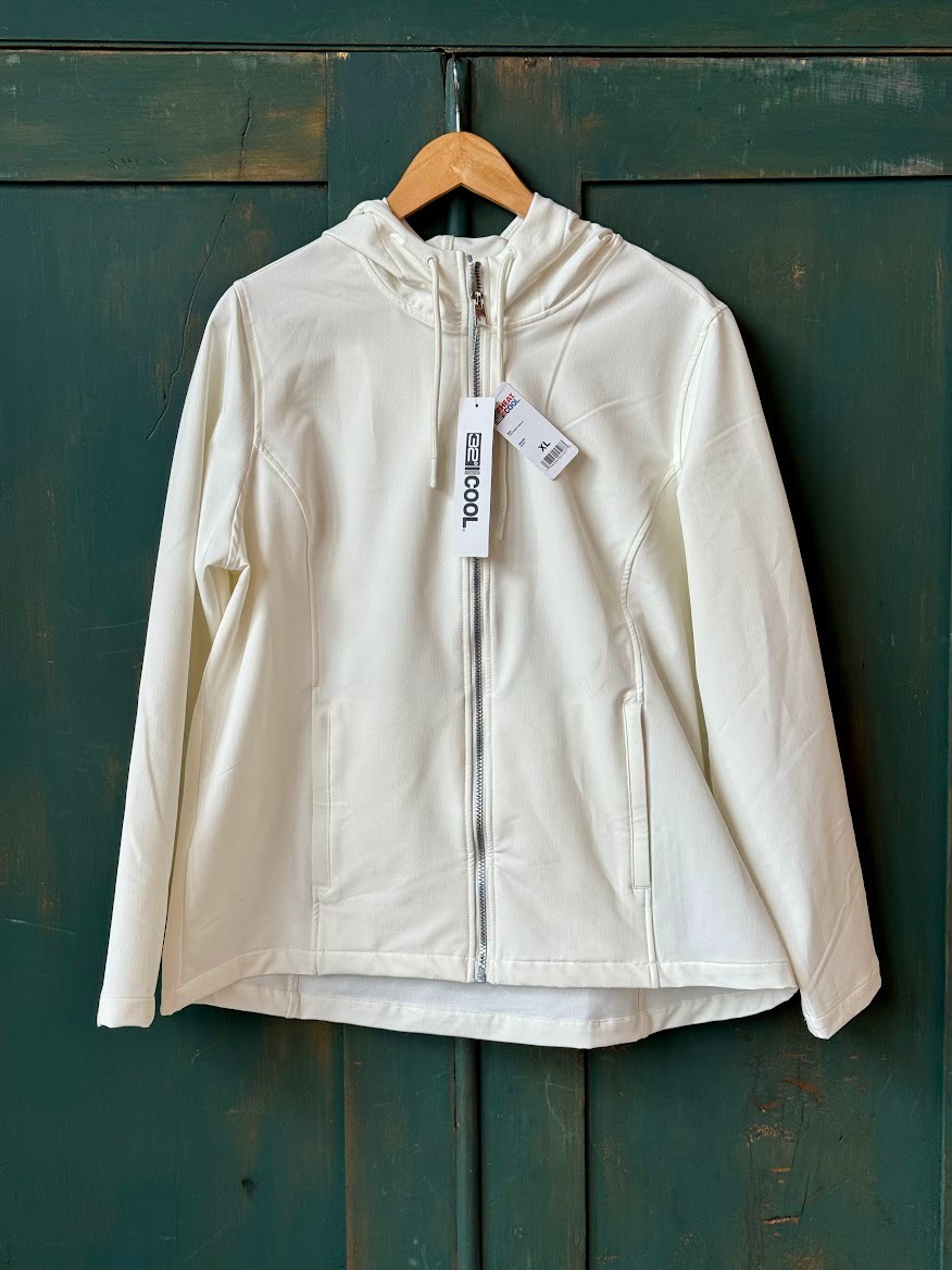 From 32 Degrees Cool; the hoodie full-zip jacket was fashioned using "innovative fabric technologies" to ensure the latest in cooling outerwear. In Egret White, size XL.