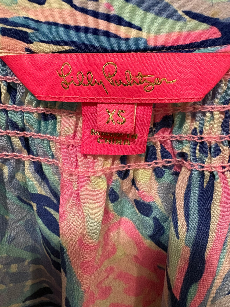 Lilly Pulitzer Elsa Silk Top is a fashionable long sleeve, loose fitting smocked V-neck blouse. It has a four button front with balloon sleeves which are elasticized at the wrist.