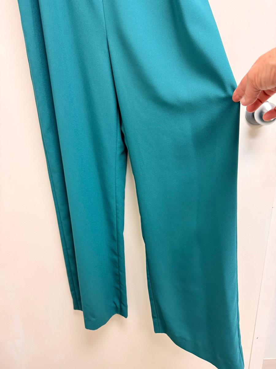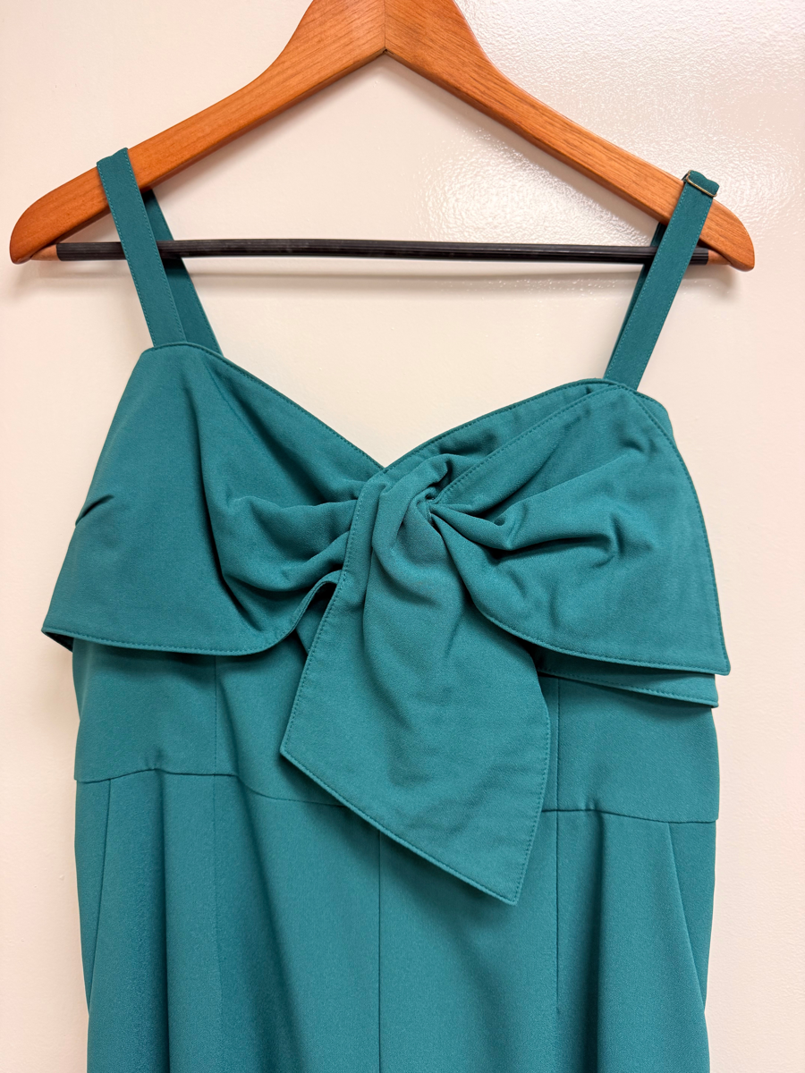 his is a special Lilly Pulitzer Kavia Twist Front Jumpsuit in Hosta Green satin back crepe. Think of the “cost per wear” of this functional piece: Casual, Christening, Formal, Party/Cocktail, Wedding to name a few. The jumpsuit has adjustable straps and lined pockets. It is a true treasure for that special occasion.