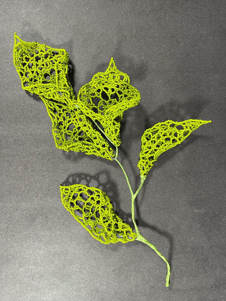 This beaded set of five lime green leaves is reminiscent of our favorite lime green potato vine leaves -- like pure joy and energy growing out of your planter, no watering necessary. Would be absolutely lovely in a bouquet for a summer wedding, adorning a suit jacket, a corsage or anything else! Let your imagination run wild!