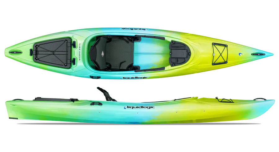 This 11 foot sit inside recreational kayak will be very forgiving for entry level paddlers and a ton of fun for experienced paddlers as well. Paddlers will instantly feel the stability, comfort and tracking of this kayak on the water. The Saluda 11 features all-day comfortable frame seating that is hand sewn in Fletcher, NC USA and a super convenient Gearstash console. The console contains a storage area for your phone or keys, recessed storage and a gear track for easy accessory mounting of a GPS or fishing rod holder. Moving back the hand-sewn seating is placed on seat bases that contain water bottle and gear storage. The stern area of the kayak has a hatch cover that can open in both directions with significant storage space underneath. There are many other features to explore on the Saluda but one of our favorite features is that this kayak is made in Fletcher, North Carolina USA.