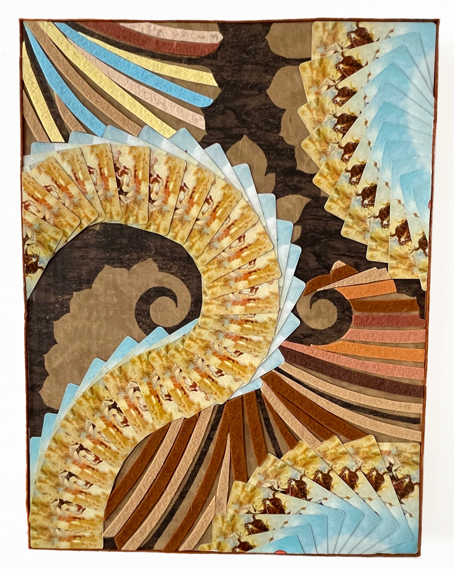 Lisa Hoke, "Round Up" 16 x 12 x 1.75 inches Felt, cards, wood, packaging Artist Bio: Lisa Hoke received her BA from The University of NC at Greensboro and a BFA from Virginia Commonwealth University, VA. She has been awarded a Purchase Award from The American Academy of Arts and Letters, NY; a Joan Mitchell Grant; The Edwin Austin Abbey Fellowship, NY; and an SECCA Award in the Visual Arts, NC. Her work has been exhibited nationally and internationally. Hoke's work is in many public collections, including The Whitney Museum of American Art, NY; Johnson Museum of Art, Cornell University, NY; and The New Orleans Museum of Art, LA. Artist Statement: Lisa Hoke's work operates in the slippage between discrete objects and installations, utilizing materials extracted from recycled packaging and disposable ephemera. Since 2004, she has focused on large-scale mural installations and wall reliefs emphasizing the intensely synthetic color and texture of various disposable materials. She collects, reshapes, and arranges these materials, augmenting them with acrylic felt scraps, all organized around highly keyed and saturated colors. Layers upon layers are constructed to create a patterned density, contributing to a visual field of cacophony.