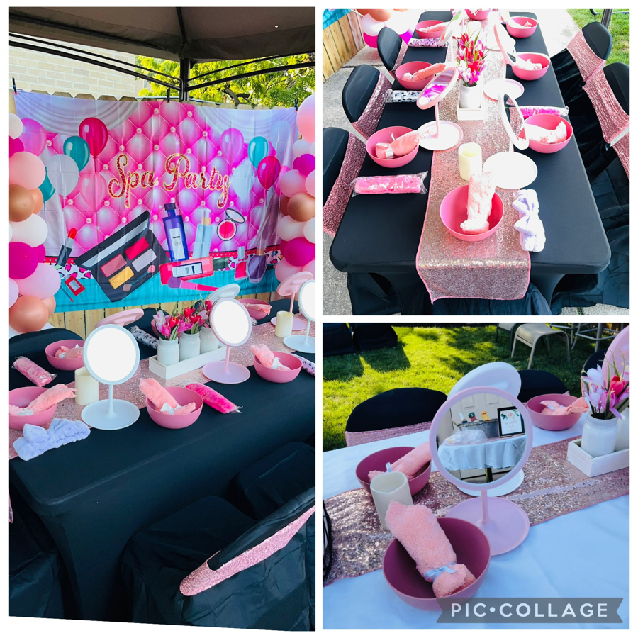 Treat your child and their friends to the ultimate spa day experience! Perfect for ages 6–9, this delightful party package includes everything you need to transform your space into a glamorous mini spa. Young guests will enjoy mani-pedis with real manicure and pedicure bowls, towels, table mirrors, and disposable pedicure slippers—plus adorable dark pink robes to wear during the party (displayed beautifully on the included rack). Each child will also receive a fuzzy headband to keep, indulge in a refreshing under-eye mask treatment, and top off their look with a lip gloss application. A stylish backdrop sign and some nail polish add the perfect touch for photo ops and pampering fun. To complete the setup, the package includes a folding table, chairs with linen, a “Mimosa Bar” sign and bucket (perfect for juice or sparkling drinks), ensuring your event is as picture-perfect as it is relaxing. This one-of-a-kind experience is sure to make any birthday or special celebration truly unforgettable! This is good for up to 10 participants!