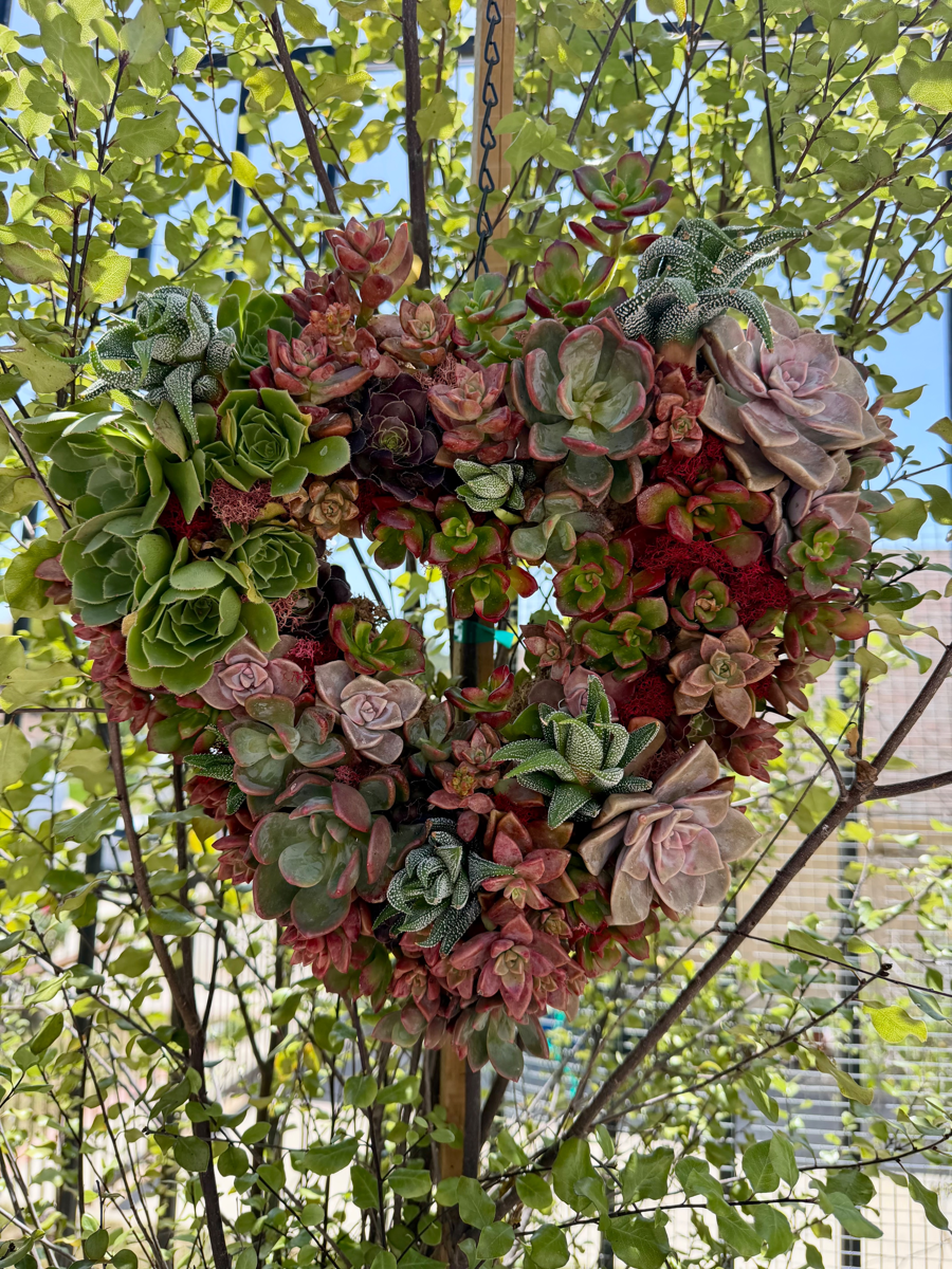 Bring a touch of natural beauty and student creativity into your home with this stunning Living Succulent Heart Wreath, lovingly crafted by Mrs. Monter’s class in partnership with Life Lab.