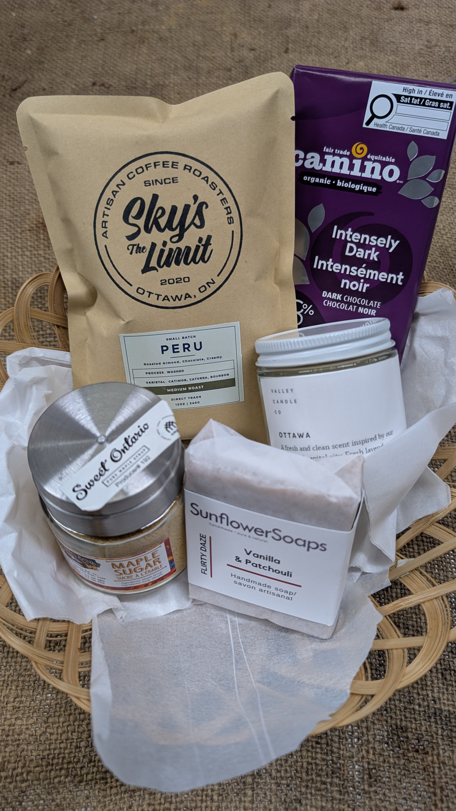 🧺 Local Ottawa Goodies Gift Basket – Coffee, Candle, Chocolate & More