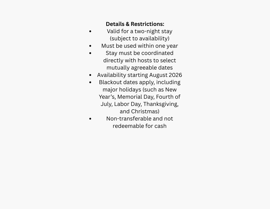Begin your stay by grabbing dinner and drinks at the unique and locally inspired Riverside Brewery with a $100 gift card for dinner and drinks. Head back to the cabin for games and a nightcap with the Disobedient Spirits gift set from the Swain family. Be sure to get a good night's sleep before heading up early the next morning for breakfast at Flip Cafe. Explore the area, and be sure to stop by Edinboro Chocolaterie, Finney's Chocolate, and Kelly Run Gallery.