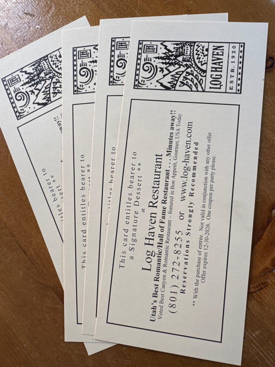 Enjoy dinner at Log Haven! End the evening with a delicious dessert.