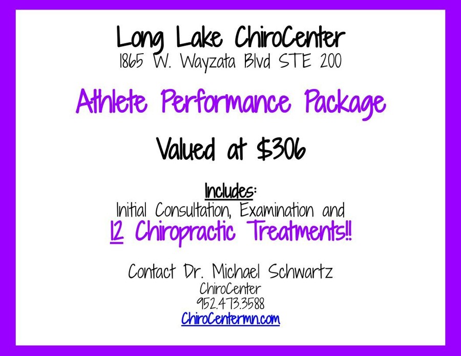 Long Lake ChiroCenter Athlete Performance Package Includes: Initial Consultation, Examination and 12 Chiropractic Treatments!!