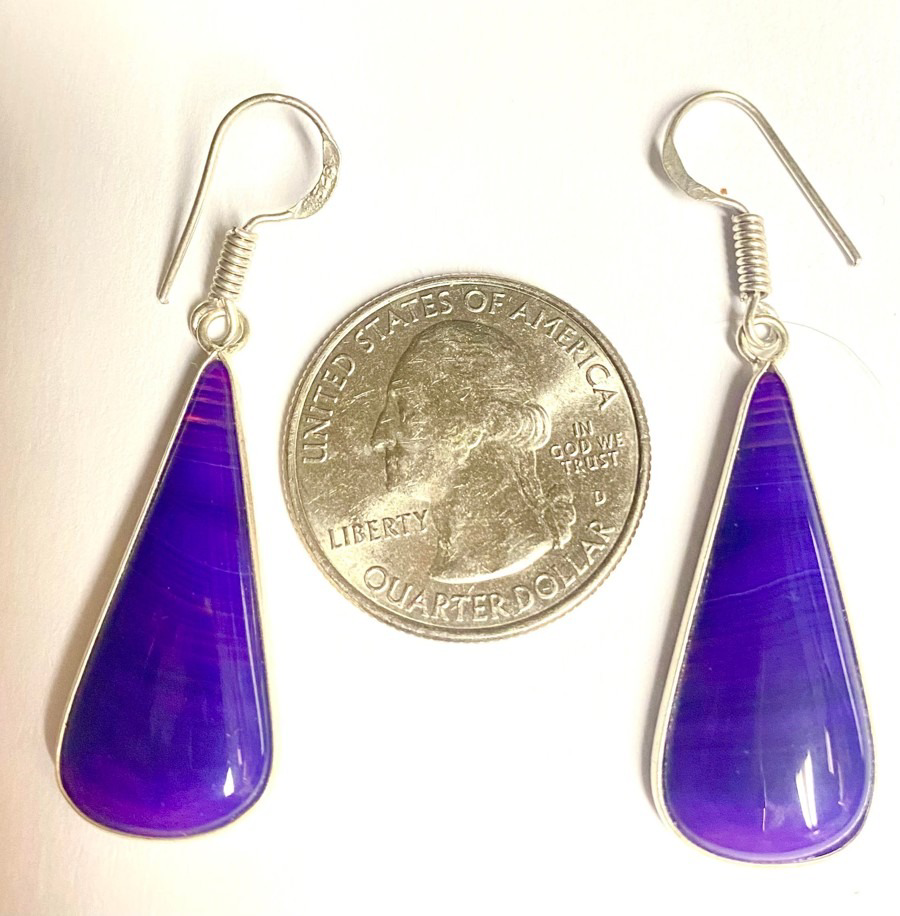 Long Purple Agate Teardrop Earrings with Sterling Silver