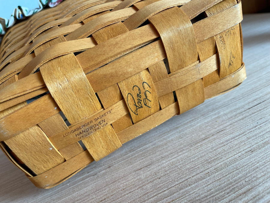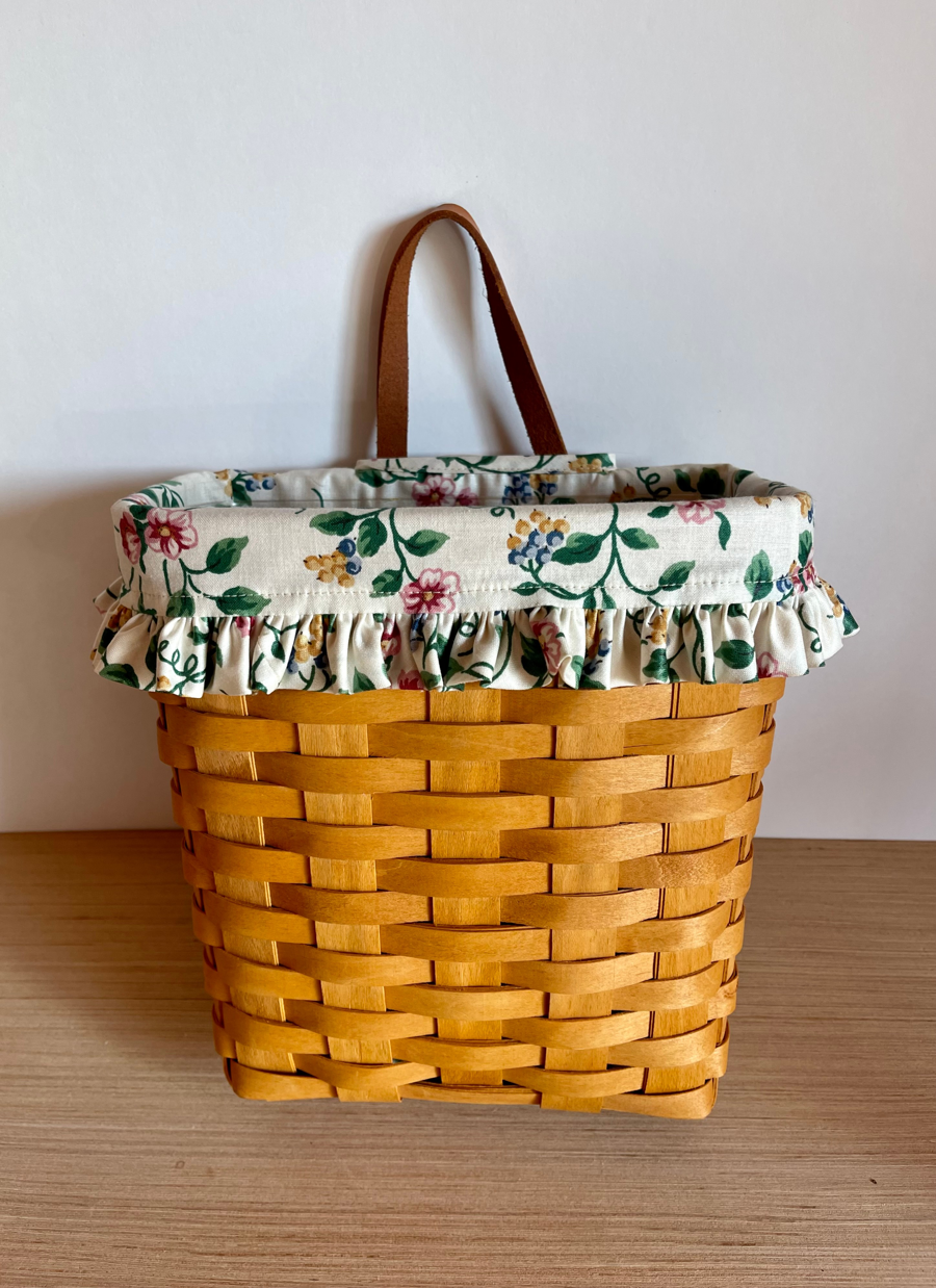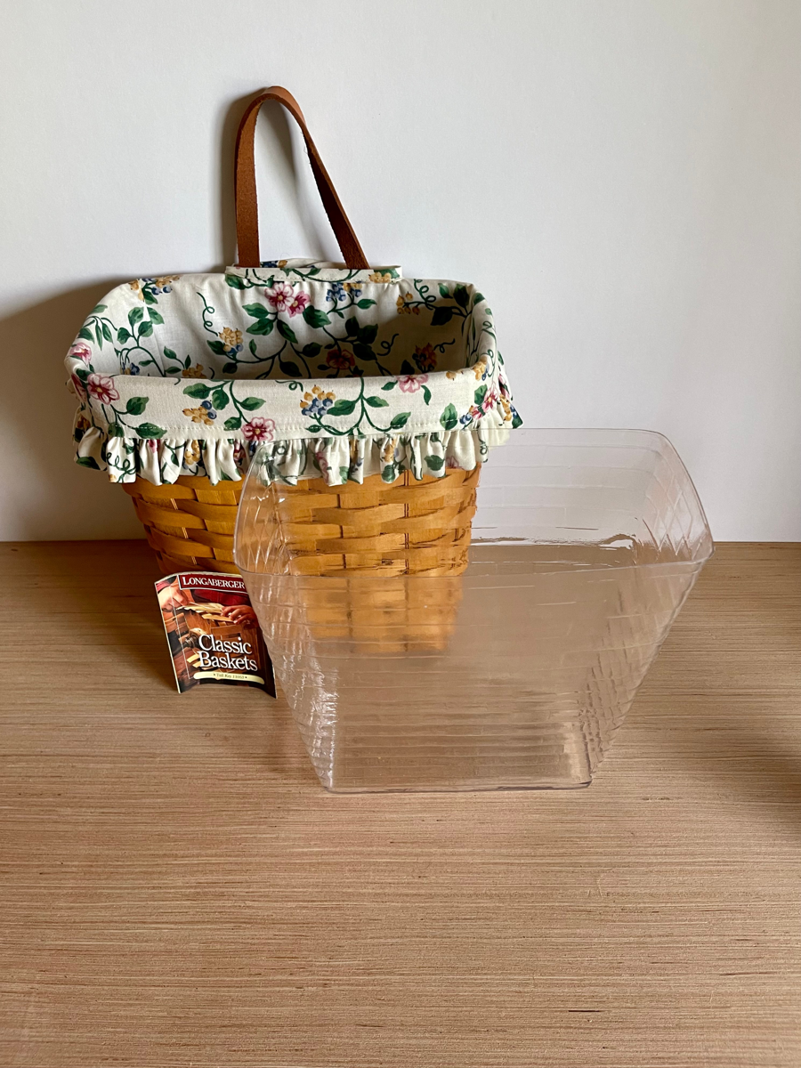 This handwoven vintage hanging basket from Longaberger comes with both the plastic and fabric liners. New, crafted in 1997 and never used.