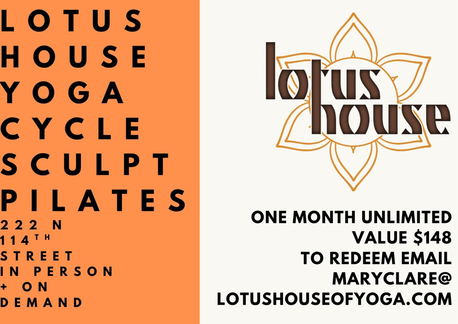 Lotus House of Yoga One Month Unlimited Classes. Term: 30 days from activation. Pass expires April 1st 2026. Lotus House is the place to empower your true self through yoga, cycle, sculpt, and pilates. Movement is the key to our total evolution. When you walk into Lotus House you are met with love, joy, and enthusiasm for life. You are accepted exactly as you are, where you are. When you are honored as you are, you connect with a community stronger than anything in the world. Lotus House thrives because of this energizing union of teacher, student, and collective vibration.
