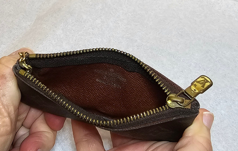 Elevate your daily essentials with the iconic Louis Vuitton pouch. A perfect blend of playfulness and practically, this compact accessory is designed to hold coins, cards, folded bills and keys. Crafted from signature monogram coated canvas with a durable grained cowhide leather lining, with LV-engraved zip closure and a secure chain with hook to attach keys, other bags or belt.