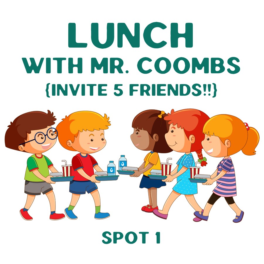 The winning bidder will join Mr. Coombs for a special lunch and may also invite up to five friends! This lunch will take place on May 2, 2025 in Mr. Coombs' office. There are two (2) available spots for this activity, you are bidding on one of them.
