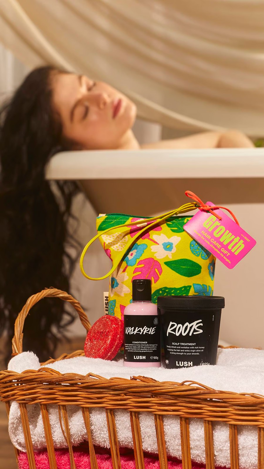 Hair Growth Gift. Nourish the roots, strengthen the lengths. Nurture growing, healthy hair with this invigorating haircare trio in a reusable organic cotton travel bag. Add volume to fine, thin and dull hair with our minty scalp treatment, Roots, then lather up with New, a clove and cinnamon shampoo bar that stimulates the scalp. Finally, rebuild your strands and improve tensile strength with Valkyrie Conditioner. Gift Contains: Roots Scalp Treatment 225g New Shampoo Bar Valkyrie Conditioner 100ml Organic Cotton Pouch