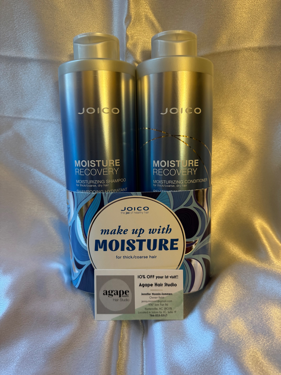 Moisture Recovery Each Bottle is nearly 2lbs -this will last a family of four for a year This giant set is generously donated by Agape Hair Studio 9747 Sam Fur Rd Huntersville, NC 28078 Salons by JC , Suite 19