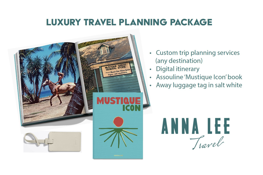 Plan your next getaway in true style with this Luxury Travel Planning Package from Anna Lee Travel. Whether you’re dreaming of a beach escape, European adventure, or bucket-list journey, Anna Lee will create a personalized travel plan tailored to your tastes—taking the stress out of planning and elevating every detail.