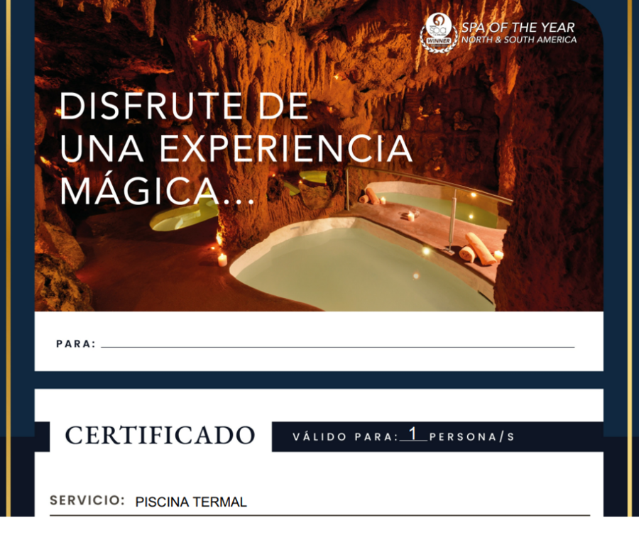 Prize Details per Certificate (Valid for 1 person only) The Thermal Pool service includes full access to: Thermal pools Outdoor contrast baths (hot–cold) Steam baths Important Terms and Conditions To redeem this certificate, the winner must consider the following: This certificate must be presented in order to use the service. The QR code on this certificate is valid for one (1) single use. A prior reservation is required via WhatsApp: +593 98 491 2044. Español: Detalles del Premio por Certificado (Válido para 1 persona) El servicio de Piscina Termal incluye acceso completo a: Piscinas termales Termas de contraste exteriores (caliente – frío) Baños de vapor Términos y Condiciones Importantes Para canjear este certificado, el ganador debe tener en cuenta lo siguiente: Debe presentar este certificado de manera obligatoria para utilizar el servicio. El código QR de este certificado es válido por una (1) sola vez. Es necesario agendar una reserva previa a través de WhatsApp: +593 98 491 2044.