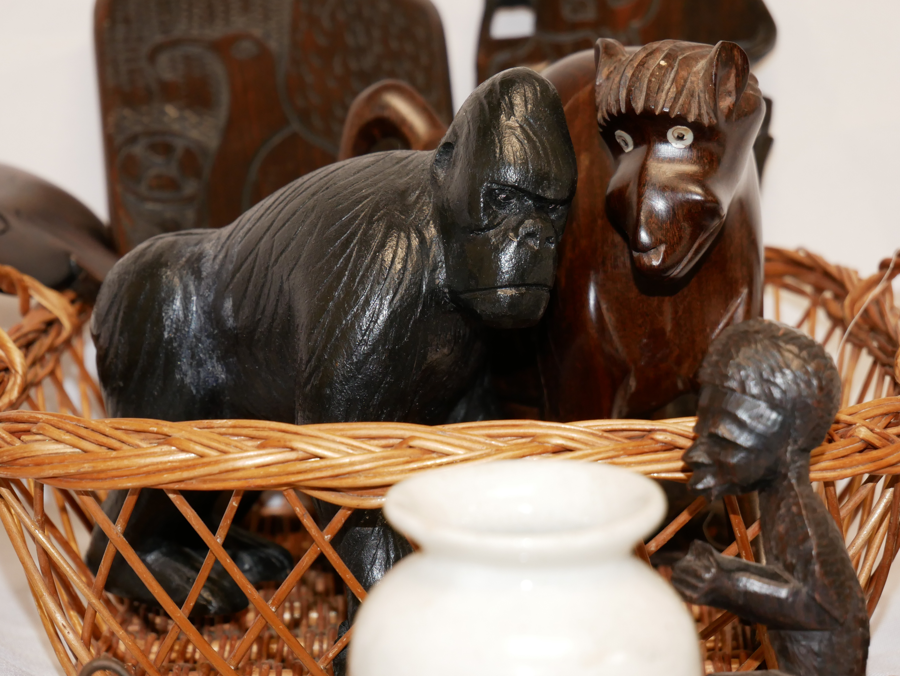 Introducing a unique Malawi Basket, a beautiful representation of the rich culture and craftsmanship found in central Africa. This auction item includes a carefully curated collection of artifacts gathered from travels throughout the region. Within the basket, you'll discover exquisite wood carvings that showcase the intricate artistry of local artisans. Additionally, there are charming pieces of small pottery, each one reflecting the traditional techniques passed down through generations. To complete this remarkable collection, a delightful soapstone cat from Kenya adds a whimsical touch, embodying the spirit of African wildlife. Don't miss the opportunity to own this stunning assortment that celebrates the diverse heritage and artistry of central Africa.