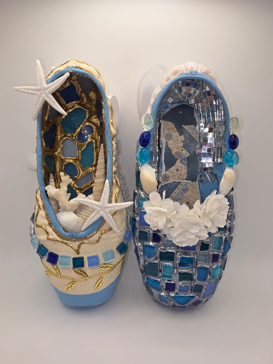 These pointe shoes were inspired by the musical Mamma Mia!. Designed by Ainsley.