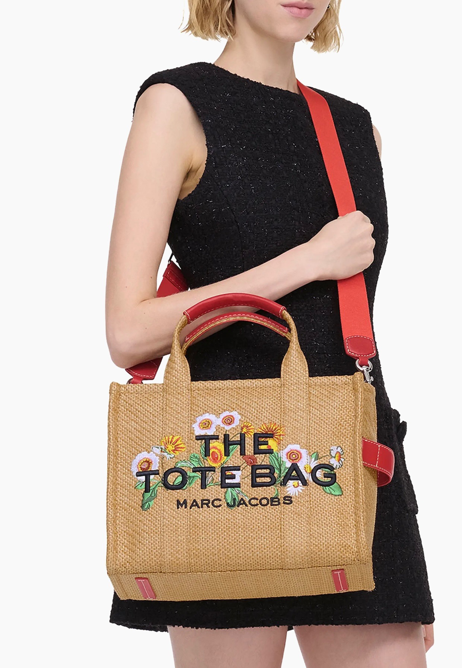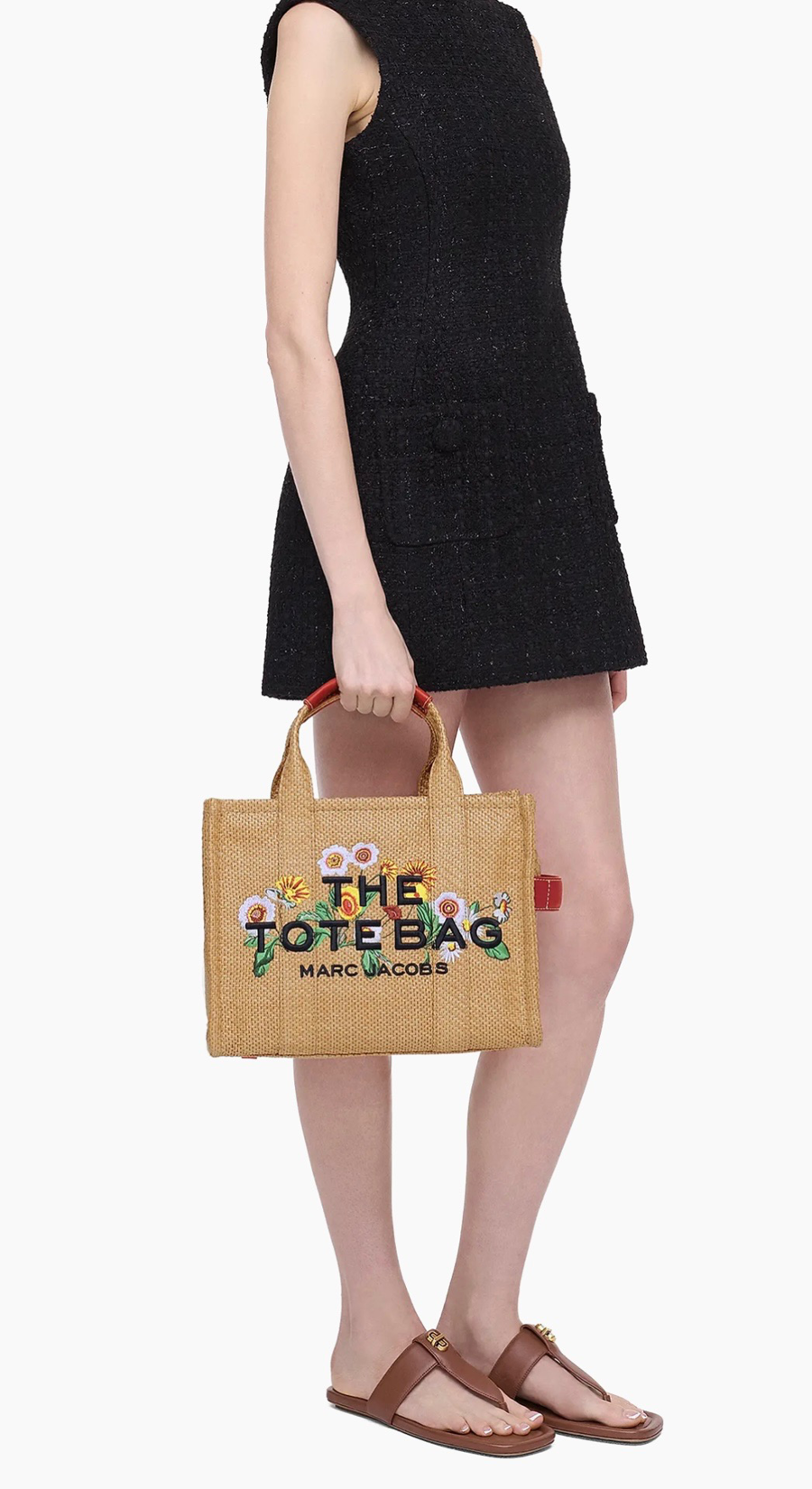 PERFECT FOR SPRING & SUMMER! THIS NATURAL WOVEN DAISY TOTE IS EMBROIDERED WITH A VIBRANT FLORAL DESIGN AND BOLD LOGO LETTERING. SO ROOMY & SO PRETTY!! THIS STYLE INCLUDES TWO TOP HANDLES AND AN ADJUSTABLE, REMOVABLE STRAP WITH TOP ZIP CLOSURE, INTERIOR SLIP POCKET & CARD SLOT. LINING: 100% COTTON. DIMENSIONS ARE APPROXIMATE.