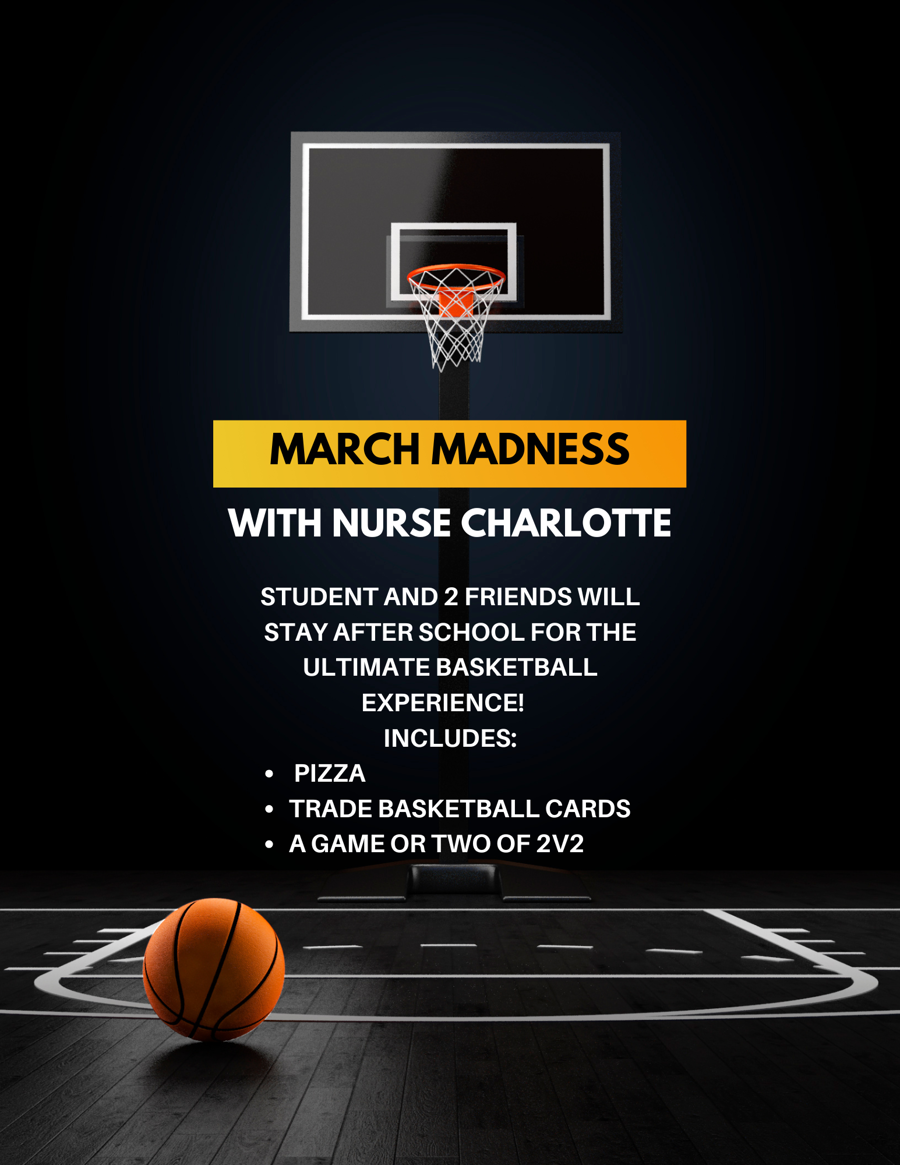 Grab two friends and stay after school for the ultimate basketball experience with Nurse Charlotte! Enjoy pizza, trade basketball cards, and then hit the court for a few competitive 2v2 games. Fun, food, and friendly competition—you don’t want to miss this!